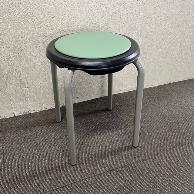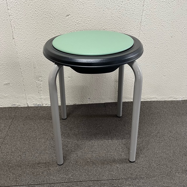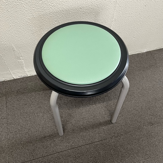 【中古】丸椅子 ライオン 多目的チェア PVCレザー ライトグリーン