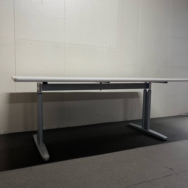 【中古】会議テーブル 手動昇降機能付き 生興 W1800*D900*H700-1000 ホワイト