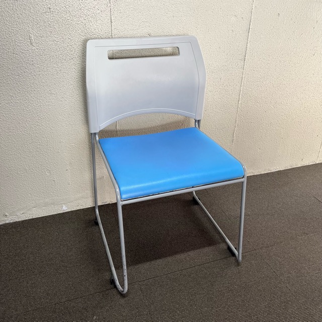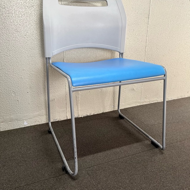 【中古】スタッキングチェア 弘益 スフィーダ ビニールレザー ブルー